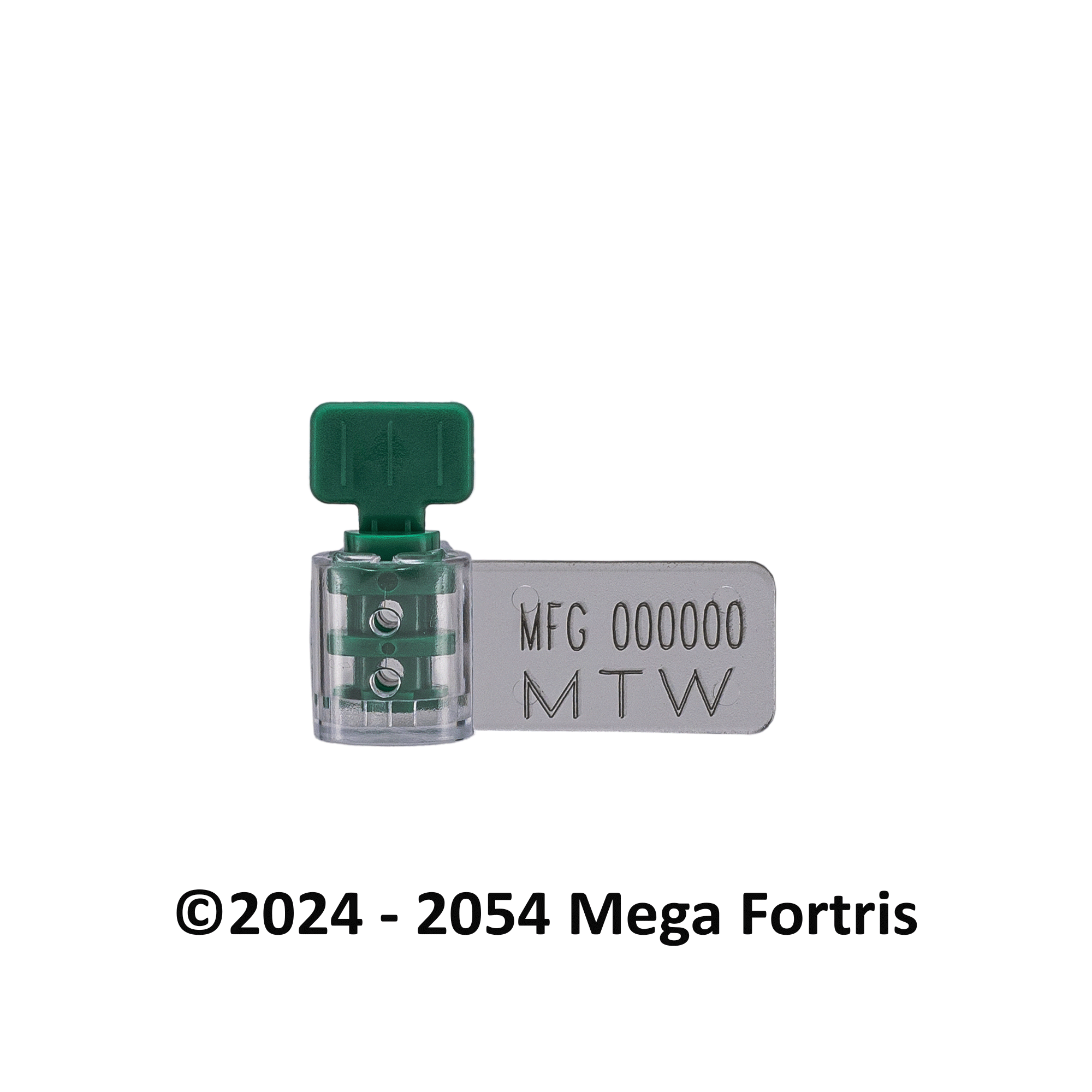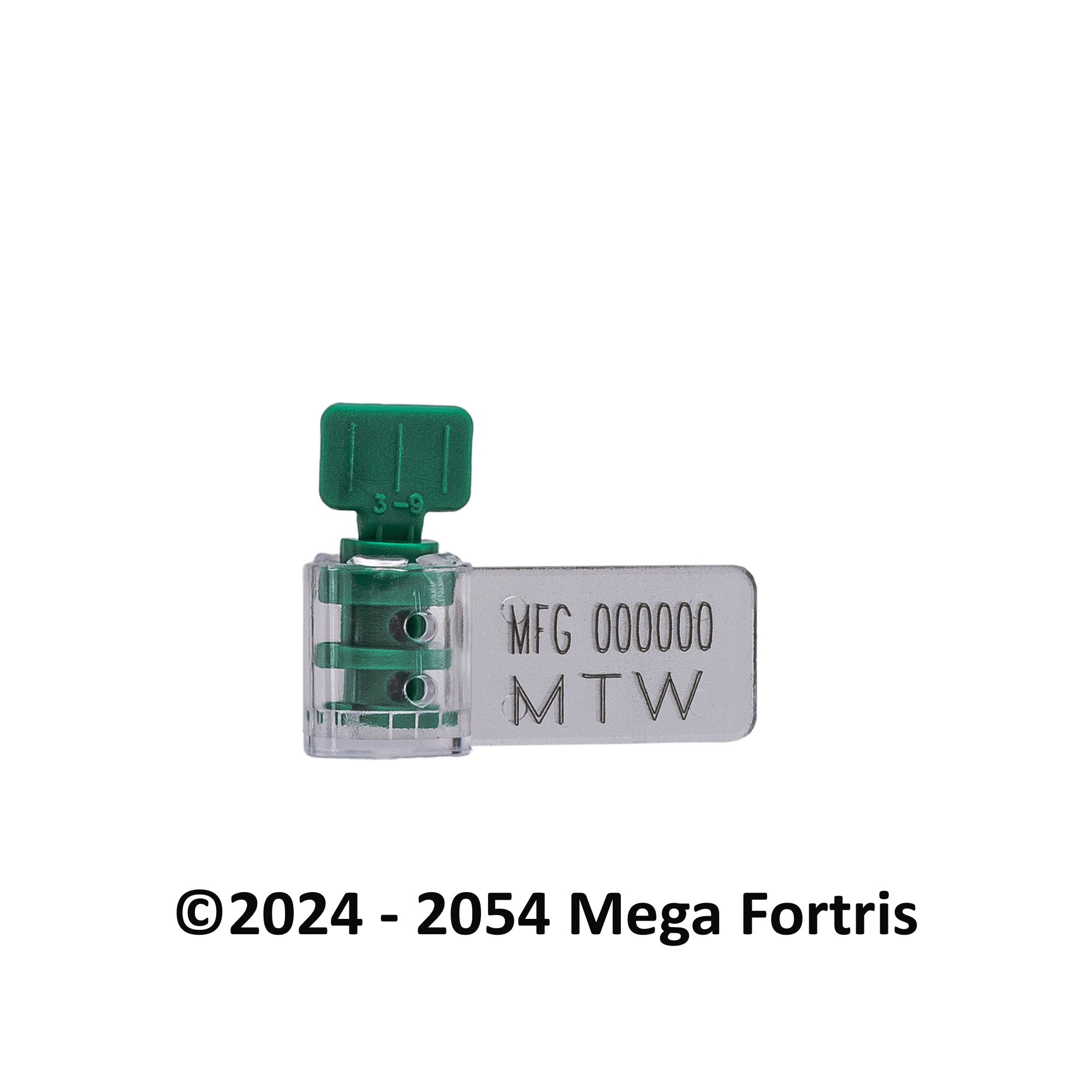 1. The Mega Twister is moulded with a twister locking insert in a plastic translucent body for a clear view of the locking and evidence of tampering.