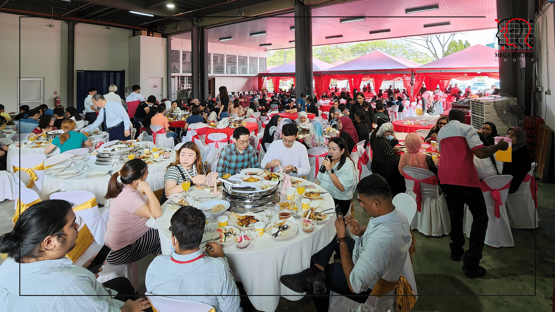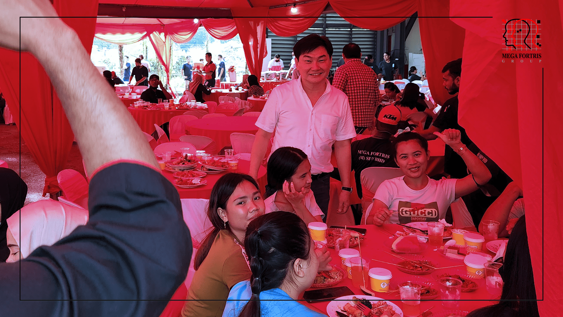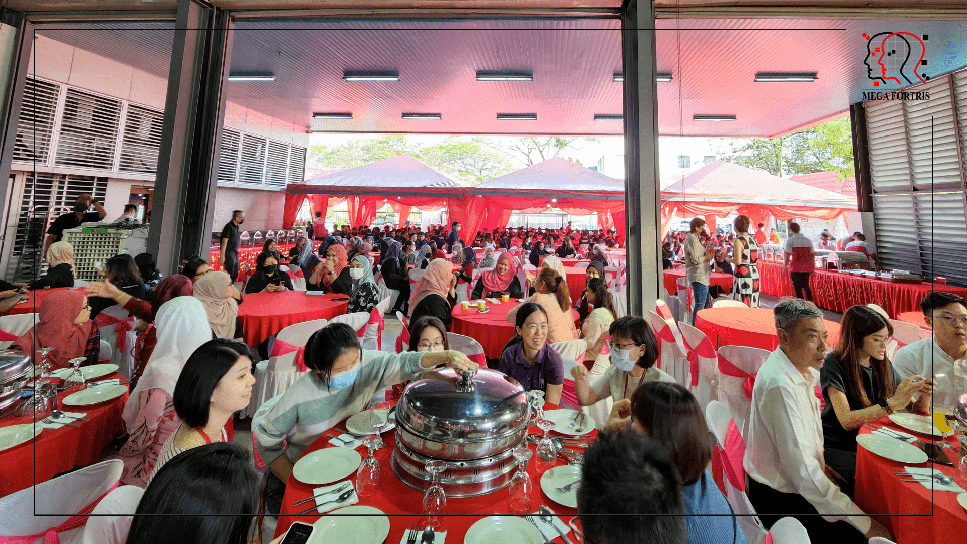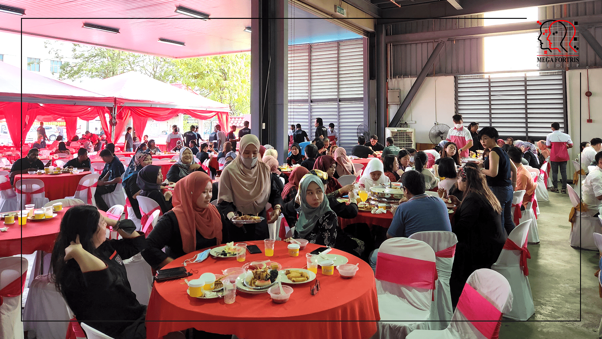 28 October 2022 — To kickstart the final Friday of October, Mega Fortris Group organised a breakfast gathering for our entire staff compliment in Malaysia. Simultaneously celebrating Deepavali, the carpark and front entrance of our office had temporarily transformed into a dining hall to accommodate the hired catering and seating arrangements, which catered for over 400 people. After putting off running such events due to the pandemic, we are happy to finally be able to safely hold a large scale gathering to spread the joy of socialising and dining together.